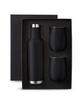 • Gift set includes one MG406 25 oz. Alsace Vacuum Insulated Wine Bottle and two matching color pieces of our PL-2229 10 oz. Stemless Vacuum Wine Tumbler with Lid in elegant black gift box